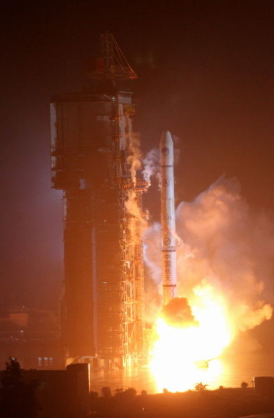 当天清晨,西昌卫星发射中心发射场周边雷电交加、暴雨如注,就在两次雷电间隙,“长征三号甲”点火腾空,宛如一条火龙在暴雨雷电中直刺苍穹。