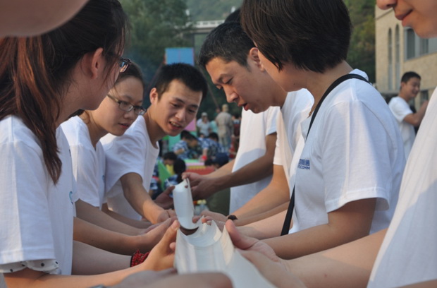 在活动开始大家就打乱部门建制,组建了4个团队:北斗队、闪电队、火箭队、梦想军团,大家分别选出了队长,设计了自己的队旗、队歌、口号,并且进行了团队展示。