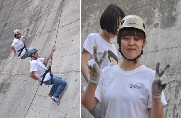 在活动过程中,大家群策群力,认真完成一个个游戏任务。在“大坝速降”的环节,大多数同事踊跃尝试,顺利完成;一些胆小的同事在大家的鼓励下,克服了内心的恐惧,也完成了挑战。