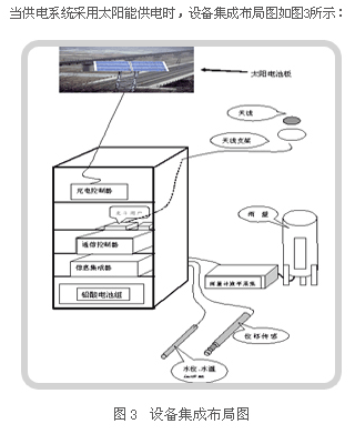 当野外地质信息监测站所位于的地区不具备交流220V供电条件时,在野外监测站配备太阳能供电系统,解决了在许多恶劣环境地区的工作所需电源,提高了整个监测网络工作的区域适应广泛性和高可靠性。