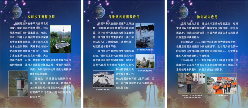 | 气象领域是最早应用我国北斗系统的重要应用领域之一。在边远台站和海岛,气象实测数据最先通过北斗导航系统试验卫星传到中心预报服务部门。早在北斗导航卫星系统建设之初,在中国北斗第二代导航卫星系统专项管理办公室的领导下,中国气象局就开展了基于北斗MEO试验卫星的北京上空大气水汽探测试验,参与了奥运气象保障,取得了很好的效果。 |